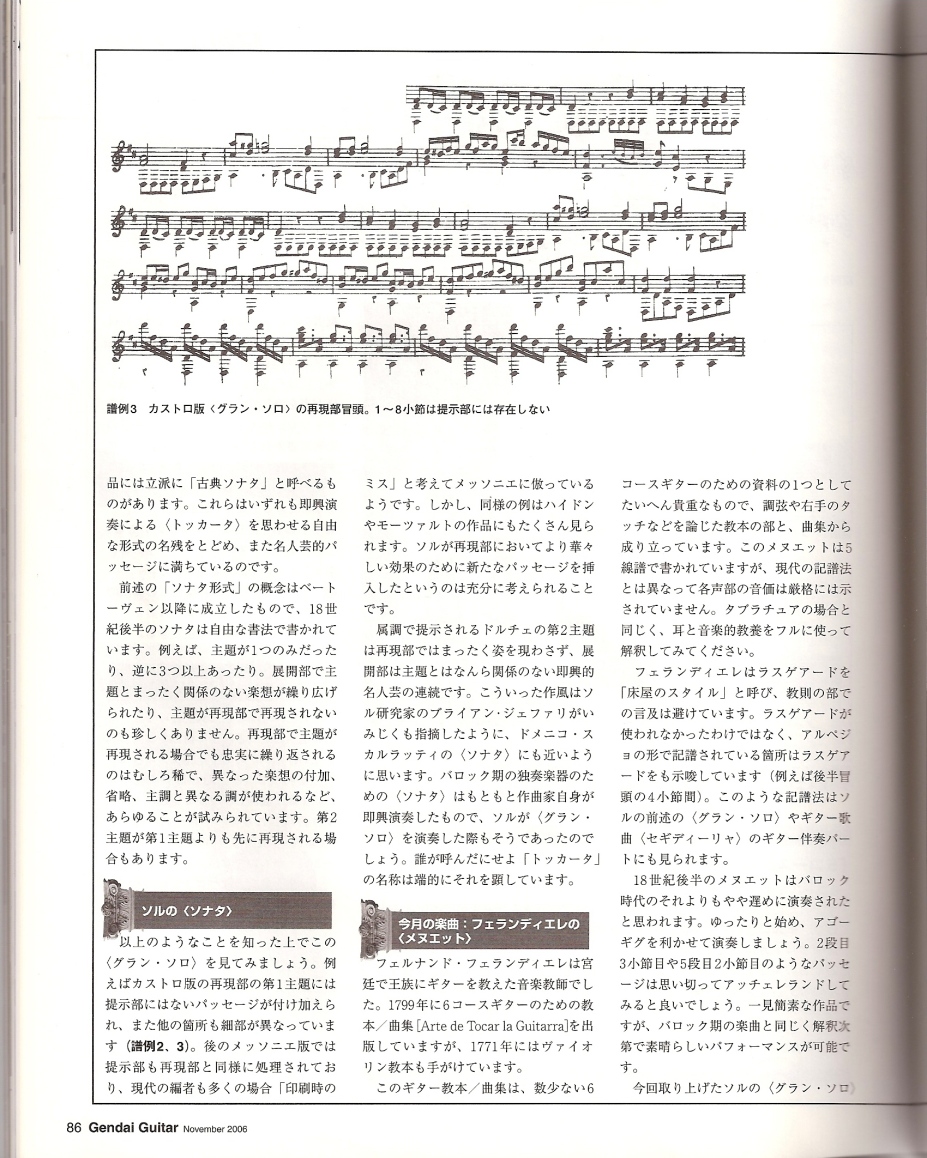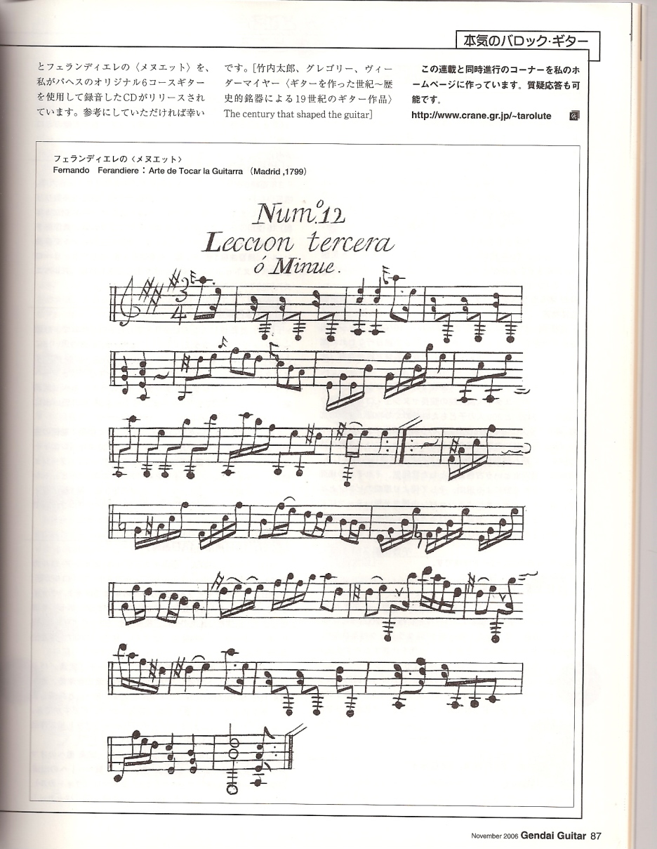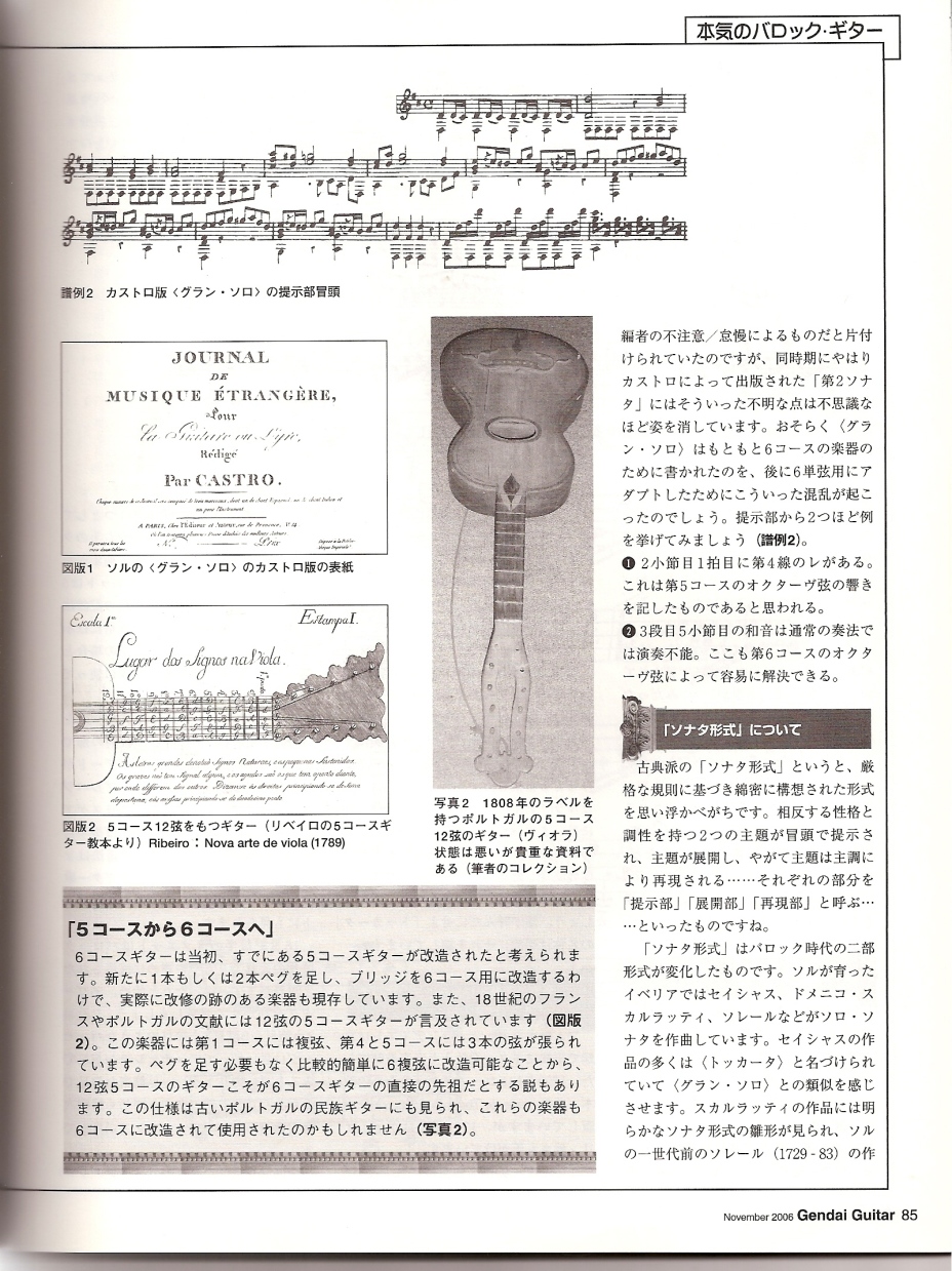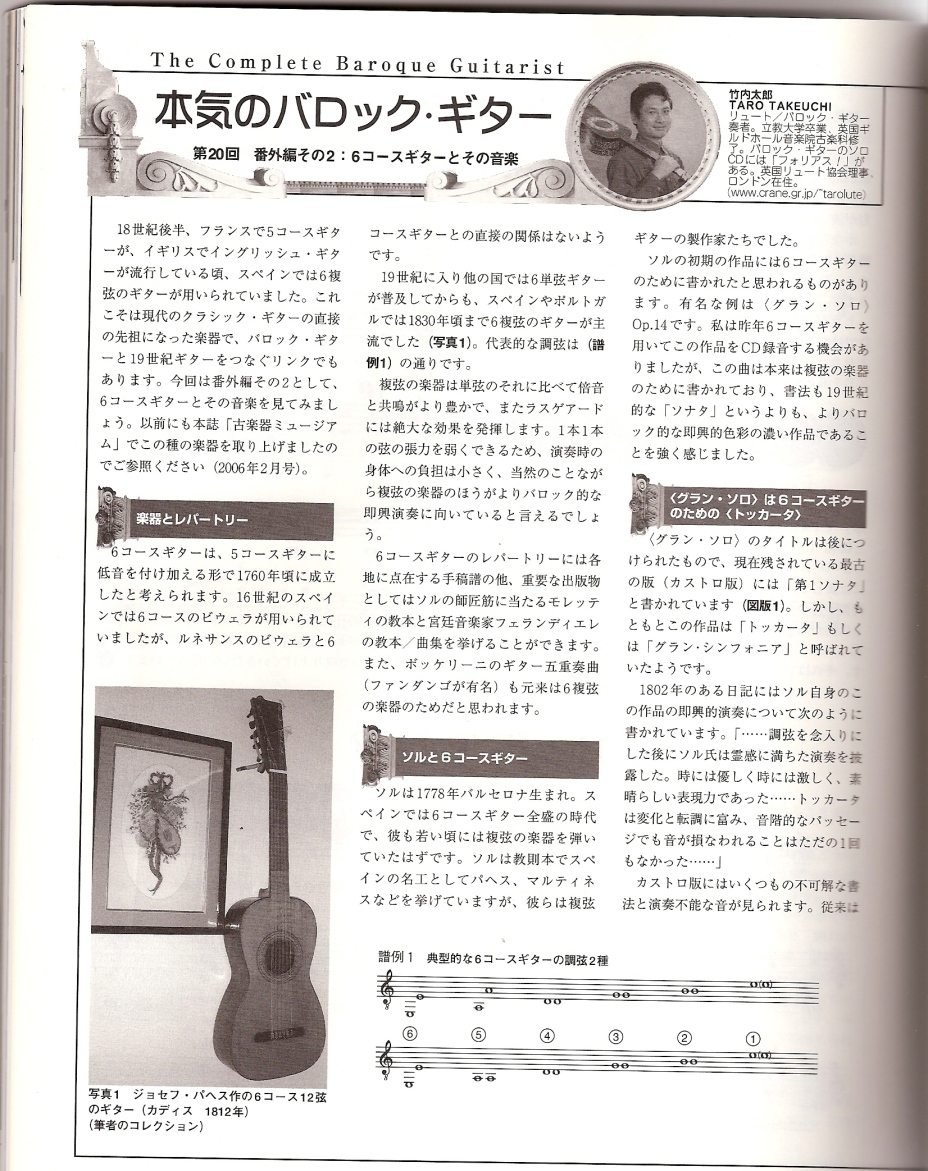 6コースギターとその音楽 By 竹内太郎 (現代ギター2006年11月号)