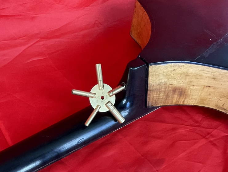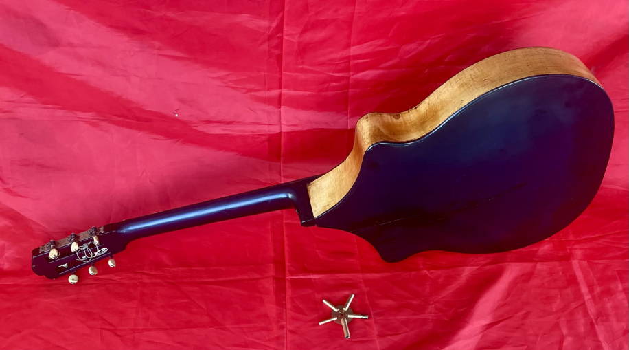 大変良質の紋章ギターです。鍵により弦高を自在に変えられます。